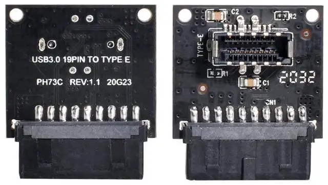 The small converter is plugged into a USB 3.0 header that provides two USB 3.0 lanes.