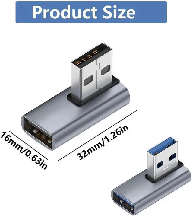 Package:90 degree USB A adapter * 2(Left &Right) .