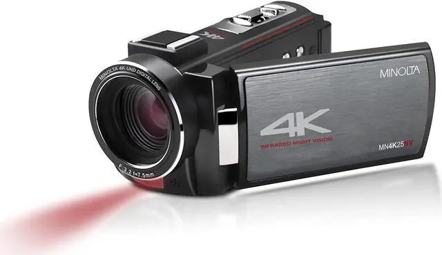 This palmheld camcorder is designed for secure digital (SD) and microSD recording media, providing you with ample storage options. In a sleek black finish, the MN4K25NV 4K Ultra HD 30MP 3" Touchscreen Camcorder with Night Vision is a testament to Minolta's commitment to innovation and quality. Capture your world in 4K with this advanced, high-tech camcorder.