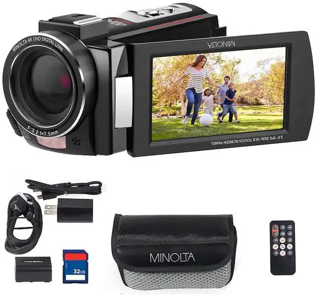 How can you capture life's moments in stunning detail With the MN4K25NV 4K Ultra HD 30MP 3" Touchscreen Camcorder with Night Vision by Minolta. This high-tech, state-of-the-art camcorder is designed to record in 4K Ultra HD video resolution, delivering superior image quality that brings your memories to life. The MN4K25NV is not just a camcorder, it's a sophisticated tool for capturing 30MP photos, ensuring every detail is crisp and clear. Its advanced 16x digital zoom lens is equipped with anti-shake stabilization, providing you with the flexibility to frame your shots perfectly, even when capturing distant subjects.