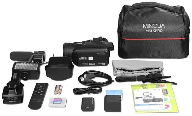 This camcorder kit comes complete with a range of professional attachments, including a lens hood to reduce glare, a handheld stabilizer for smooth footage, a stereo microphone for clear audio capture, and an LED video light for enhanced illumination in low-light conditions. The MN4KPRO also features built-in wireless integration, enabling effortless connection to your smartphone for easy photo and video sharing. With the Minolta ProShot app integration, you can control your camera and download your captured moments directly to your device. The camcorder is powered by a 3, 100 mAh high-capacity battery, ensuring extended recording times for those longer shoots.