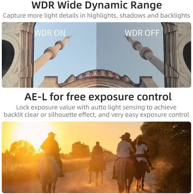 • Other Features and Functions The Ordro M3 5k camcorder supports horizontal and vertical shooting, webcam livestreamings,10X digital zoom(Press the "M"key to switch zoom in and out), time-lapse shooting, WDR wide dynamic, continuous shooting, AE-L exposure lock, long exposure, white balance, slow motion, EV exposure compensation, etc.