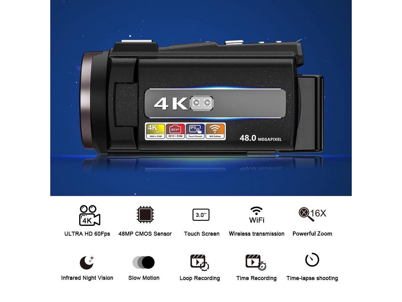 Digital WIFI Camcorder 4K Full HD 16MP DV Camcorder Digital Video Camera 270 Degree Rotation Screen 16X Night Shoot Zoom