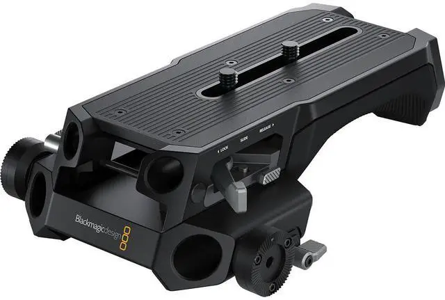 One of the standout features of this baseplate is the integrated shoulder pad at the bottom. This ergonomic addition provides comfort during prolonged use, making it an ideal choice for long shooting sessions. In addition, the 19mm Baseplate offers various mounting options, allowing you to customize your rig to suit your specific filming needs. Whether you're shooting a cinematic masterpiece or capturing high-quality video content, the 19mm Baseplate for URSA Cine 12K camera by Blackmagic Design is a crucial tool for achieving stable and professional results.