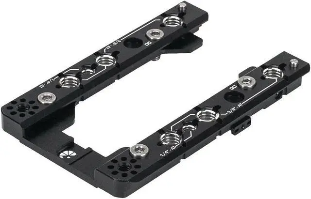 The Top Plate's integrated NATO rails span the entire length, featuring spring-loaded safety releases at both ends to prevent accidental disengagement of mounted accessories. This quick-release functionality is ideal for filmmakers and videographers who need to adapt their setup swiftly and securely in dynamic shooting environments. For added versatility, the Top Plate includes a variety of mounting options to suit any rigging requirement. The stainless-steel helicoiled threaded points offer superior strength and resilience, safeguarding against thread stripping or binding - a critical consideration for those who frequently reconfigure their camera setups. Additionally, the plate boasts NATO, 8T, and QD points, allowing for a customized arrangement of gear.