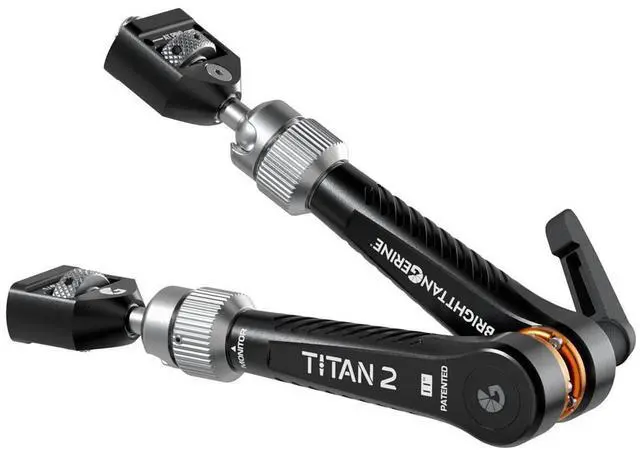 With the Titan Arm 2, we've created a monitor arm that's built to last a lifetime. Thanks to a unique self-supporting design, the Titan Arm is able to hold its position even when fully unlocked - and that'll only change if you want to adjust it. With anti-twist 1/4" and 3/8" thumbscrews at either end, the Titan Arm 2 can hold up monitors, lights or even small cameras. More than just a monitor arm: the Titan Arm 2 offers new freedom for mounting accessories: from monitors and microphones to lights or even small cameras. The Arm has a patented system for retaining strength and stability - even when fully unlocked. The Titan Arm has a strength capacity of 5kg from its interchangeable mounting points: with multiple Adapter options available. Built from top-quality stainless steel and anodized aluminum, the Titan Arm 2 is built to withstand the toughest of shoots. No SlackThe Titan Arm 2 features a unique friction-based system, which shifts the pressure on the mechanism to different positions as the arm pivots. This means that the mechanism won't strip out or wear down over time. The Titan Arm 2 is guaranteed to last. Self-SupportingIn those high-pressure moments on set, it can be frustrating having to unlock and re-lock a traditional monitor arm. With the Titan Arm 2, you can reposition the arm even when the mechanism is fully locked. And on the other end of the spectrum, the Arm has enough internal strength to stay steady - even with the lever unlocked. Tool-Free MountingThis Titan Arm 2 kit features a 3/8"-16 thumbscrew at the camera end, and a 1/4"-20 thumbscrew at the monitor end - the industry standards for mounting. The thumbscrew design removes tools from the equation, meaning that you can attach and detach accessories or the Titan Arm itself in moments. Ideal for MonitorsThe 1/4" screw comes with removeable locating pins that help you mount different monitor standards; including Atomos, SmallHD and ARRI.
