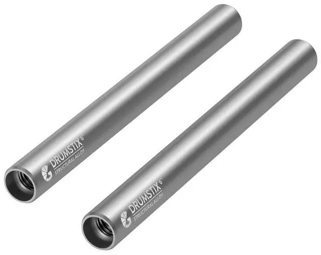 This Drumstix kit provides two 6" rods: ideal for mounting with shoulder rigs or other large components. With a standard 15mm diameter and joinable design, the rods can be combined to create custom lengths to suit various camera rigs and support a wide range of accessories. Extendable DesignThe structural alloy rod features M12 threads at both ends, allowing for easy and secure connections with the B 1252.1035 - Drumstix 15mm Structural Alloy Threaded Rod Joiner. This enables you to extend rods seamlessly, creating longer configurations without gaps. The smooth join ensures accessories can slide over connections effortlessly. This joinable design not only allows compatibility with other Drumstix rods but also supports third-party accessories, enabling you to add end points or studs as needed. Flexible ConfigurationsWhile these structural alloy rods are 6" ( 15.2 cm) in length - the middle length of the Drumstix range - you may sometimes need longer rods. The Rod Joiner lets you connect two rods effortlessly, creating a seamless join that allows accessories to slide over the connection without any interference. Unrestricted CompatibilityWith a 15mm industry-standard diameter, Drumstix rods are compatible with a wide range of camera components, from lenses to lights.