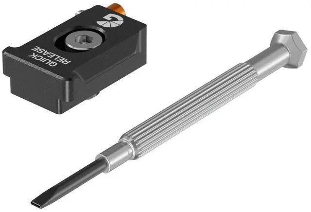 Quickly ReleasedThe Quick Release NATO Rail is 20mm in length, fitting snugly into the adapter. With both an easy-press safety and a hard-stop, you can mount your monitor in confidence that it is secure. You still have convenient access to quickly release your monitor should you need it. Monitor CompatibleMonitors from ARRI, Atomos and SmallHD all use a 1/4" screw for their mounting - the only variation is in their locating pin placement. With this quick-release rail, it is easy to swap monitor brands. Use the included flathead screwdriver to remove and replace the locating pins - with the corresponding locations marked for extra convenience.