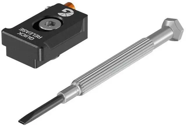 Quickly ReleasedThe Quick Release NATO Rail is 20mm in length, fitting snugly into the adapter. With both an easy-press safety and a hard-stop, you can mount your monitor in confidence that it is secure. You still have convenient access to quickly release your monitor should you need it. Monitor CompatibleMonitors from ARRI, Atomos and SmallHD all use a 1/4" screw for their mounting - the only variation is in their locating pin placement. With this quick-release rail, it is easy to swap monitor brands. Use the included flathead screwdriver to remove and replace the locating pins - with the corresponding locations marked for extra convenience.