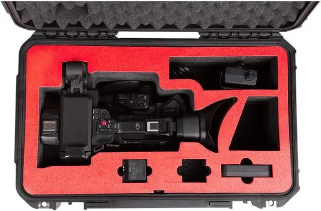 While specifically engineered to safeguard your Canon XF605 Pro Camcorder, the iSeries 3i-2011-10XF Waterproof Wheeled Hard Case offers more than just a snug fit. This rugged, high-quality case is crafted with a custom interior made from premium ethafoam, ensuring your camera is securely held, whether the battery is installed or not. The case's thoughtful design includes additional space for the battery charger, two batteries, and two generously sized accessory compartments. The battery slots are versatile, accommodating either the BP-A30 or BP-A60 batteries, thanks to the tear-away foam sections.