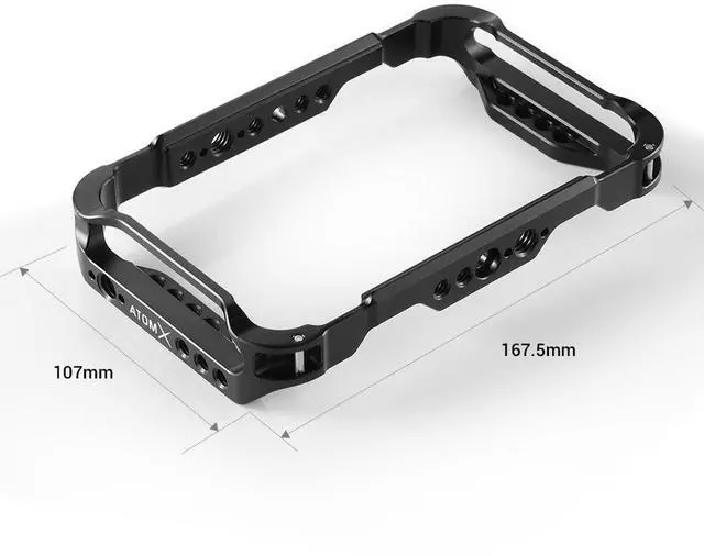 Experience the ultimate in camera protection and versatility with the Atomx 5" Shinobi Cage by SmallRig. This robust monitor cage, co-designed by industry leaders, offers an additional protective exo-skeleton for your camera monitor, enhancing its durability and longevity. Constructed with a plethora of industry-standard mount points, this sturdy cage allows for an impressive range of mounting options. It securely attaches to the monitor using two 1/4''-20 screws at the top and bottom, providing a firm and reliable setup. The Atomx 5" Shinobi Cage is designed with multiple 1/4''-20 and 3/8''-16 holes across all sides, including the rear side of the monitor.