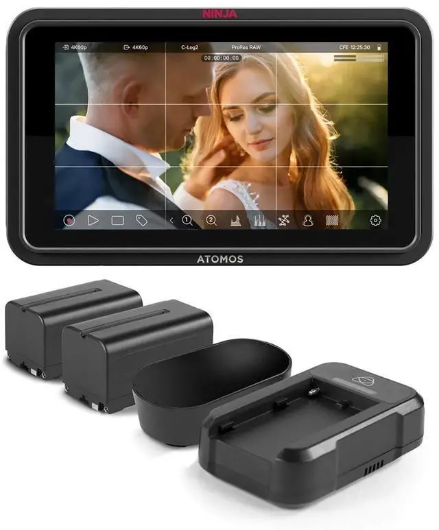 Professional Monitoring ToolsThe Ninja TX offers a n expansive suite of easy to use, one-touch monitoring tools for focus, framing, and exposure, including focus peaking, zoom ( 2:1, 1:1 ), zebras, false color (including ARRI and EL Zone), frame guides, SMPTE safe areas, grid markers, waveforms, RGB parade, vectorscope, and flexible 3D/1D LUT support with profile and preset options (including. cube file uploads). It also provides anamorphic de-squeeze monitoring to correct the ratio for anamorphic lens setups. Power OptionsAn L-series battery on the back of the Ninja TX supports NP-F L-series batteries. Alternatively, a battery eliminator can be used to provide DC power to the monitor, or a USB-C port supports 30W PD power delivery with the included cable.