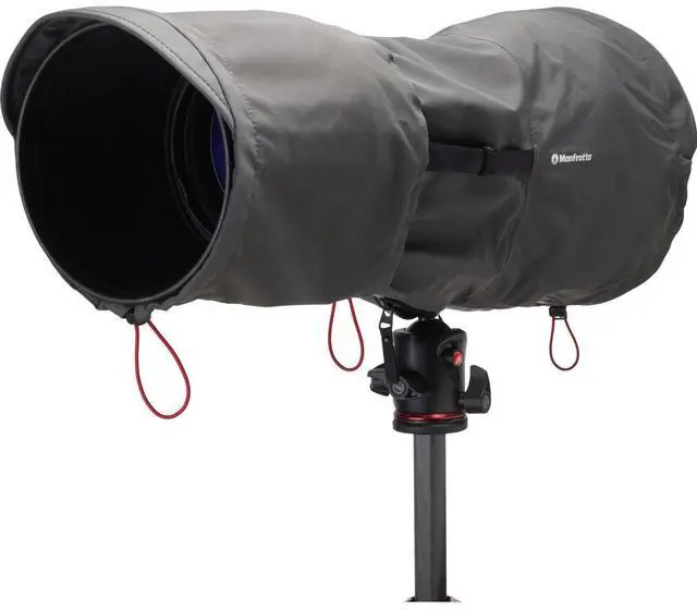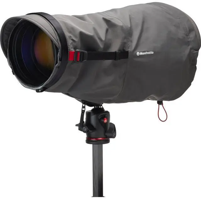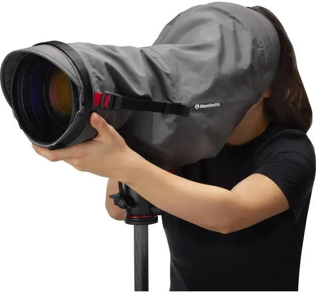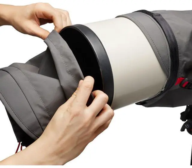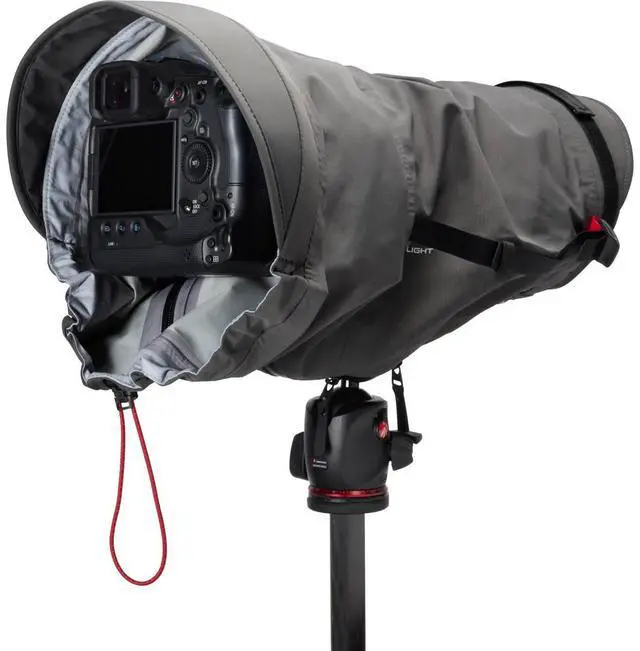 Discover the Pro Light Teleshield Rain Cover, a meticulously designed protective accessory for your camera. This versatile rain cover is engineered to shield your camera, whether it's a DSLR or mirrorless model, equipped with a super-telephoto lens from harsh elements such as rain, sand, or mud. Its adjustable diameter and length, combined with a secure strap and Self-Securing Closure mechanism, ensure a snug fit for telephoto lenses up to 600mm/ 2.8. This rain cover is crafted with precision and comes with an additional extension for enhanced protection, making it an ideal companion for lenses equipped with a lens hood.