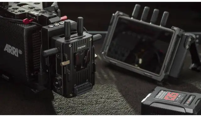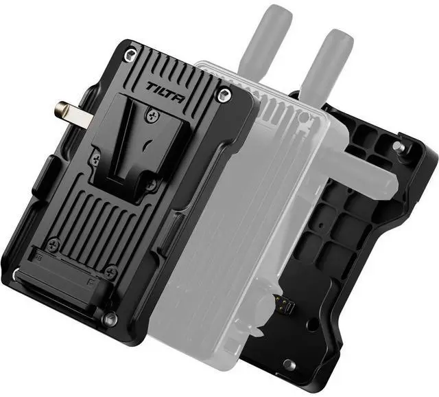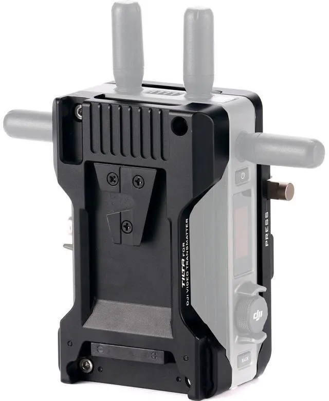 Please note, the plate can only mount to the transmitter in one configuration, positioning the SDI ports on the Operator's side and the LCD Screen/Control Knob on the Assistant's side. This Power Supply Module for DJI Video Transmitter, V-Mount to V-Mount, is a comprehensive solution for your power and mounting needs.