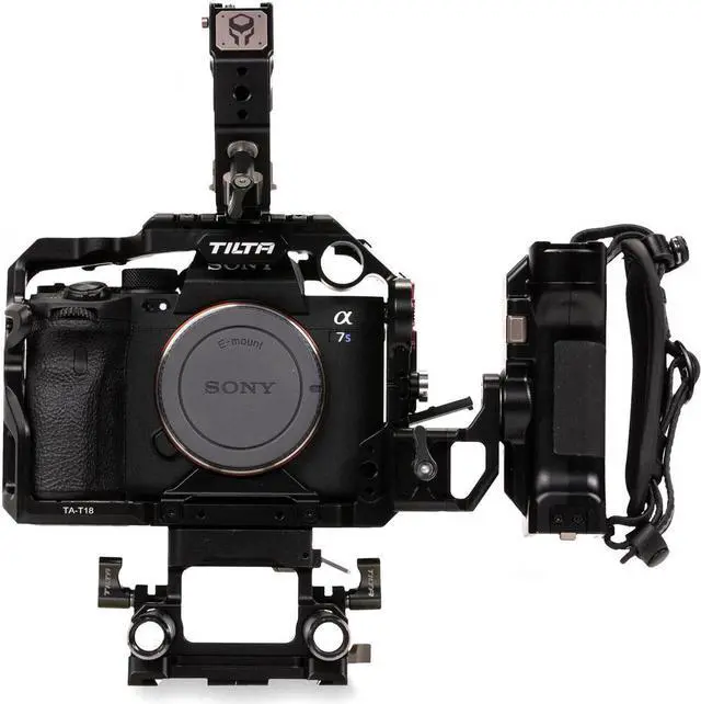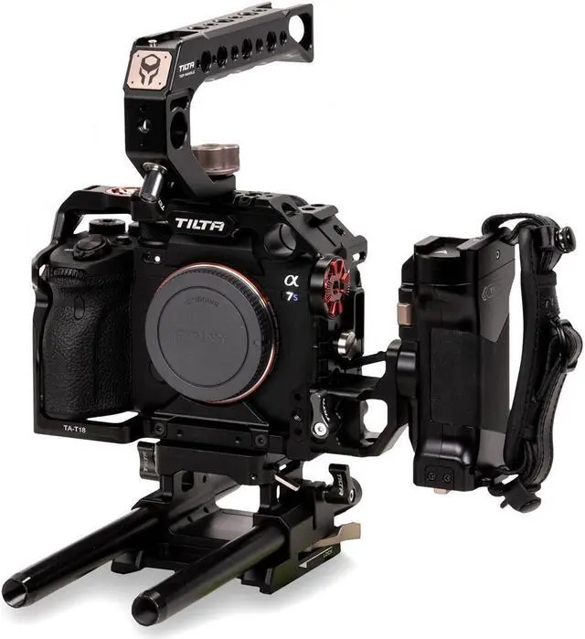 Find the ultimate solution for your Sony a7S III camera with the Tiltaing Pro Full Camera Cage Kit. This comprehensive kit is designed to enhance your camera setup, offering a robust Full Camera Cage for Sony a7S III, a quick-release top handle, Arca and Manfrotto quick-release baseplates, and a 15mm LWS baseplate for mounting accessories. The Full Camera Cage is a protective armor for your Sony a7S III camera, featuring multiple 1/4"-20 and 3/8"-16 mounting points, two cold shoe mounting points, and a rosette connection for attaching various side handles.