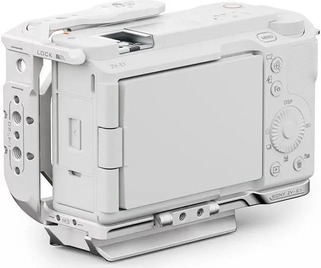 Become a master of videography with the Half Camera Cage for Sony ZV-E1. This high-quality, durable camera cage is designed to enhance your camera's video capabilities without compromising on its compact form factor. Specifically crafted for the Sony ZV-E1, this sturdy camera cage offers a secure and stable platform for your camera, allowing you to attach a multitude of external accessories. The Half Camera Cage for Sony ZV-E1 features multiple mounting options, including a Cold Shoe Receiver, NATO Rail, M3 Threads for Lens Support, and 1/4"-20 threads with locating points.