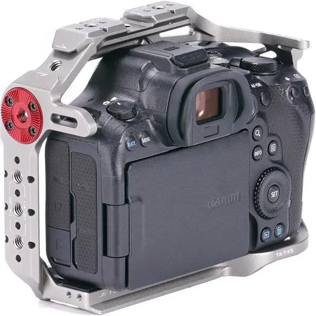 Why settle for less when you can enhance your photography experience with the Full Camera Cage for Canon R6 Mark II This premium camera cage is meticulously crafted to augment your camera's functionality, while simultaneously offering superior protection against scratches and bumps. The Full Camera Cage for Canon R6 Mark II is a versatile and rugged accessory that provides a secure foundation for your camera. It features multiple mounting points, including an ARRI Rosette, NATO Rail, Cold Shoe, and 1/4"-20 Threads with Locating Pins. These mounting points offer a plethora of options for attaching your accessories, making this camera cage a versatile tool for any photographer or videographer.
