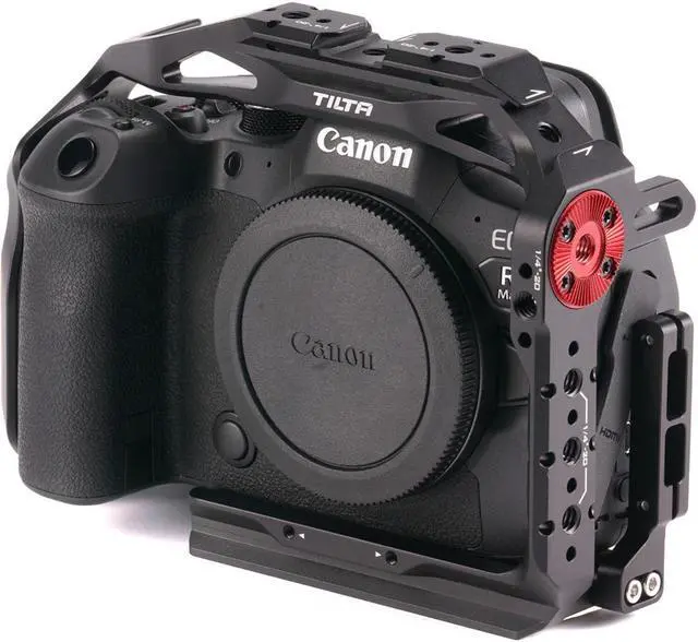 One of the standout features of this camera cage is its compatibility with our innovative Modular Baseplate System. This compatibility allows for an even wider range of accessory mounting options, making it an indispensable tool for video production. To ensure your cables stay securely in place during use, the Full Camera Cage for Canon R6 Mark II comes with a USB-C cable clamp. This feature is particularly beneficial when shooting video, as it prevents your cables from accidentally disconnecting and potentially ruining your footage. Lightweight and compact, this camera cage is designed with an integrated, secure mounting system that offers two points of contact for a secure connection.