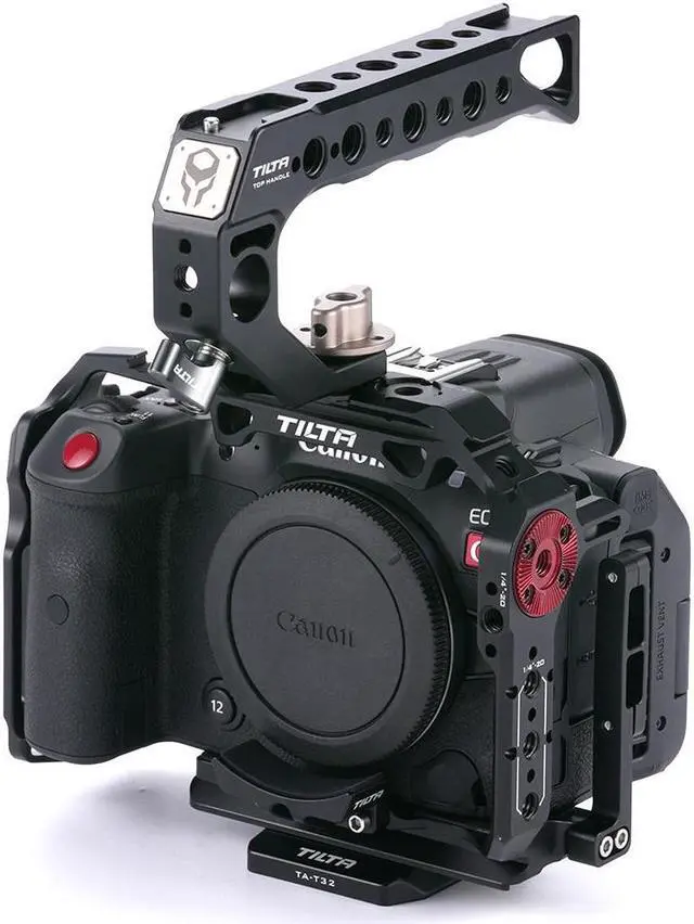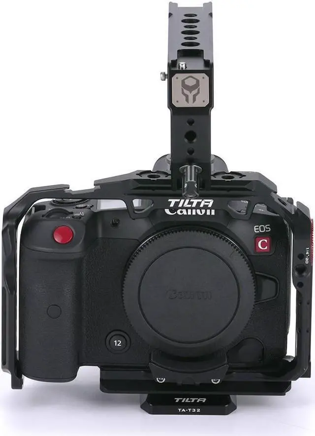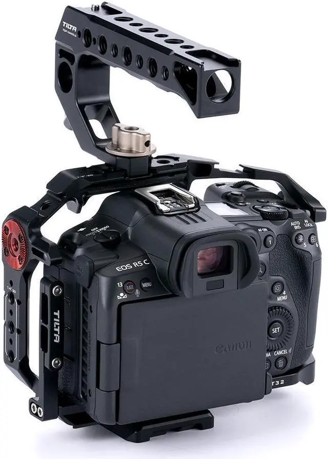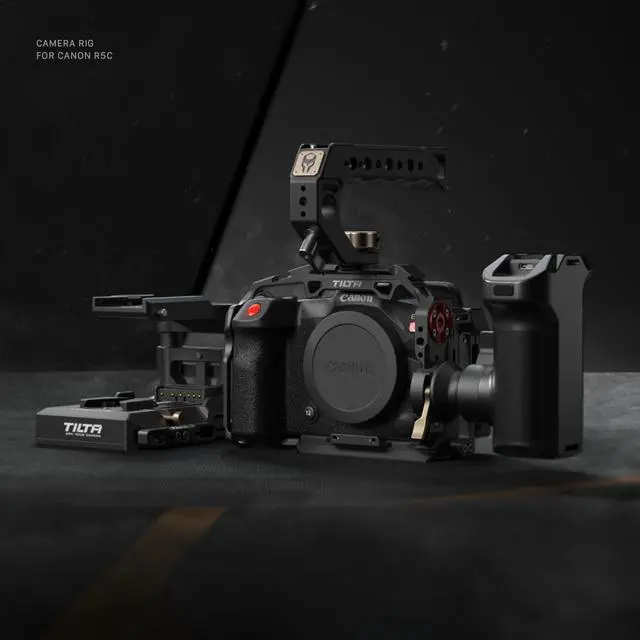 With its custom design and precise CNC machining, this camera cage offers an optimized design with built-in cold shoe mounts and reserved space for camera buttons. It also allows easy access to the battery slot for quick battery swaps. The cage's new V-mount design and multiple mounting points for accessories ensure a stable output and increased continuous shooting time. The Full Camera Cage for Canon R5 C Basic Kit is more than just a protective accessory; it's a tool that enhances your camera's functionality and your creative possibilities.