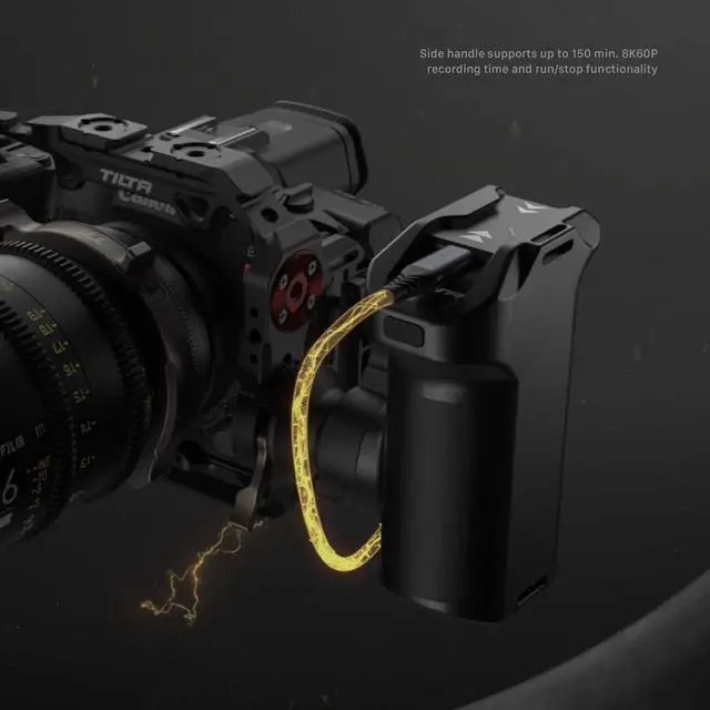 The Quick Release Top Handle, included in the kit, can be conveniently mounted to the cold shoe receiver on top of the cage. This handle not only provides a comfortable grip for handling the camera but also facilitates low angle shots. It features several 1/4"-20 and 3/8"-16 mounting points and two cold shoe receivers on the front and back, offering even more options for accessory attachment. The cage is designed with a built-in silicone cushion to hold the camera body securely while protecting it from potential scratches. The base of the cage offers multiple mounting options for quick release plates and natively supports our Smart V Mount Battery Baseplate and LWS Baseplate Type IV.