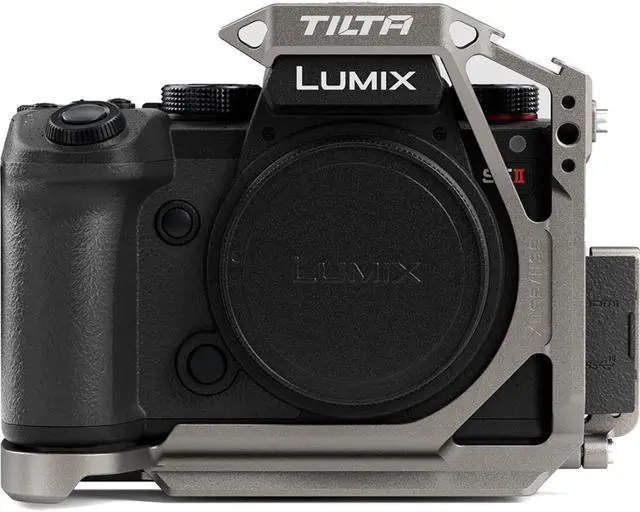 Despite its functionality, this camera cage maintains a compact and lightweight design, ensuring easy access to camera buttons and ports. Its custom design accommodates a compact and efficient configuration, providing two points of contact for a secure connection. This Half Camera Cage for Panasonic Lumix S5 II/IIX is the perfect accessory to optimize your camera's performance and adaptability.