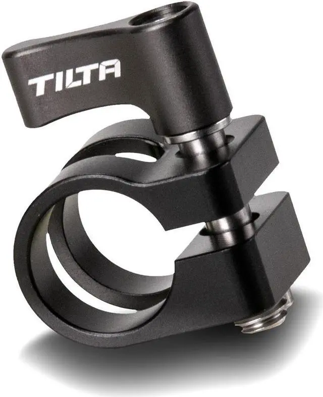 This 15mm single rod holder can attach to the side of the Tiltaing half and full camera cages to allow you to place a 15mm rod off the side of the camera for attaching accessories.