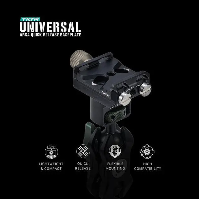 This innovative feature enhances compatibility with various brands' standards for quick release plates, camera cages, and L-brackets, making it a truly versatile accessory in your photography kit. The bottom of this baseplate is thoughtfully designed with multiple 1/4"-20 threads and a 3/8"-16 thread. This flexible mounting system simplifies the process of attaching this baseplate to a diverse range of systems, offering you a multitude of mounting options. In essence, the Tilta Universal ARCA Quick Release Baseplate is more than just a mounting tool. It's a testament to durability, versatility, and convenience, designed to work with almost any camera and tripod combination.