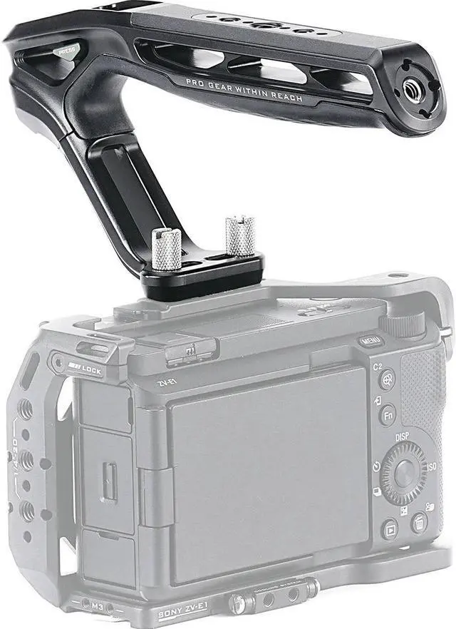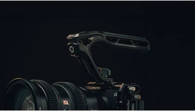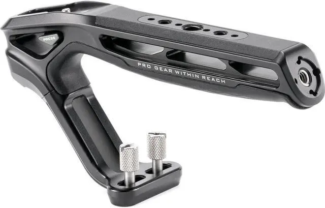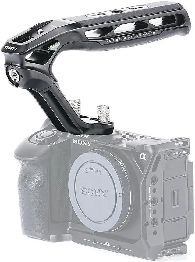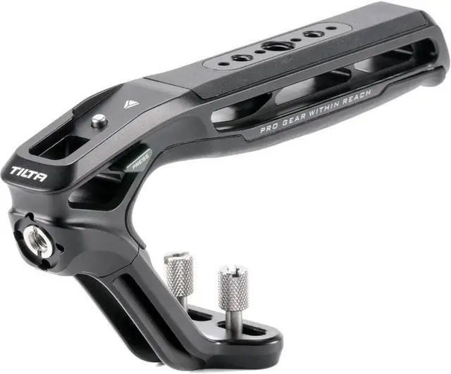 Let the Xeno Top Handle with Dual 1/4"-20 Thumbscrews in Black elevate your photography and videography experience. This durable and versatile camera accessory is designed to be mounted on a wide variety of camera cages and systems, providing you with numerous options to suit your specific needs. The handle boasts four distinct mounting options: 1/4"-20 with Locating Pins, NATO, Dual 1/4"-20 thumbscrews, and Cold Shoe. This flexibility allows you to easily adapt to different shooting scenarios, making it an indispensable tool for both professional and amateur photographers and videographers. The Xeno Top Handle is not just about functionality, but also about comfort and security. The handle is designed with a large silicone padded grip, providing a comfortable and secure hold. The curved handle design, coupled with the anti-slip silicone, enhances grip friction, ensuring a more secure and better handheld experience. This high-quality handle also features multiple mounting points for additional accessories, including 1/4"-20 and 3/8"-16 threads with locating points. The Cold Shoe Receiver with a Safety Release Pin and an Arri Standard Locating Thread further enhance its versatility. Whether you're using Tilta Camera Cages or other camera systems, the Xeno Top Handle is designed to work seamlessly with a wide range of camera cage mounts. Choose the Xeno Top Handle for ultimate flexibility and easy expansion of your photography and videography gear. With its sturdy construction and reliable performance, this top handle is set to be a valuable addition to your equipment.