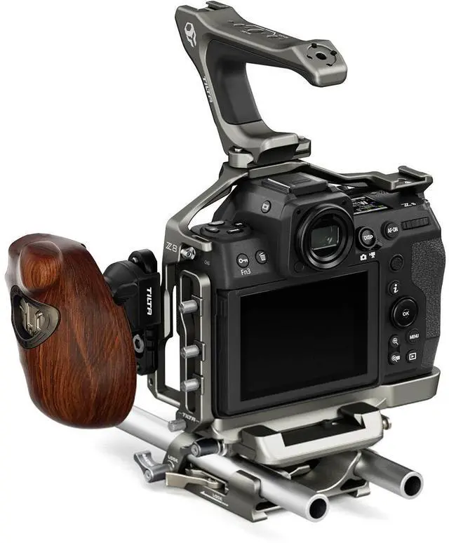 Finally, the kit includes a 15x200mm Aluminum Rod, compatible with 15mm studio and 15mm LWS baseplates, providing a way to mount additional accessories to your camera rig. In summary, the Full Camera Cage Pro Kit for Nikon Z8 in Titanium Gray is a comprehensive, professional solution designed to enhance the functionality and versatility of your Nikon Z8 camera. It offers a robust platform for mounting a wide array of accessories, providing you with the flexibility to create customized setups to suit your specific shooting needs.