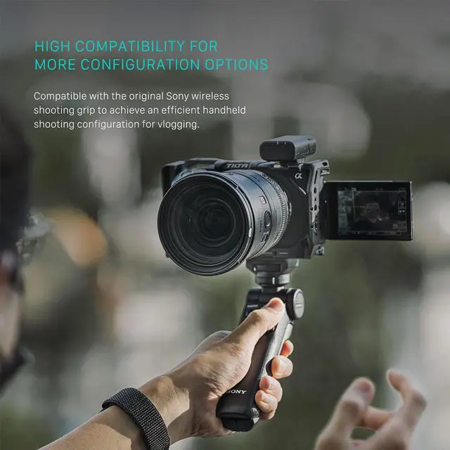This compatibility, coupled with the cage's built-in handgrip, designed based on feedback from professional photographers, makes this one of the most versatile camera cages on the market. Despite its robust structure, the cage allows easy access to all essential camera features. You can maintain uninterrupted access to camera ports, user buttons, and the battery compartment without the need to remove the cage. This feature ensures that your workflow remains smooth and efficient. The camera cage is also compatible with the original Sony wireless shooting grip, facilitating an efficient handheld shooting configuration for vlogging.