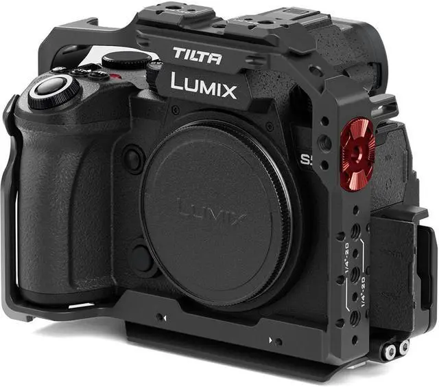 Experience unparalleled versatility and protection for your Panasonic Lumix S5 II or IIX with our meticulously designed Full Camera Cage. Crafted to expand the capabilities of your camera, this robust full cage safeguards your camera body while providing a wealth of universal mounting options to enhance your photography and videography workflow. Constructed with precision, the cage boasts integrated NATO rails, ARRI Rosette, Cold Shoe, and multiple 1/4"-20 threads with Locating Pins, ensuring compatibility with a diverse range of accessories. The dual NATO rail connections are strategically placed to accommodate our optional Type IV/VI Side Handles or the Compact NATO Top Handle, enabling seamless transitions between various shooting angles and orientations.