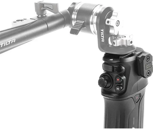To utilize this with the DJI Focus Motor, an optional Wireless Receiver Module is required. The Wireless Receiver Module, while not included, is a valuable addition that allows the handle to connect wirelessly to the DJI RS2 or RS3 Pro. This feature enables seamless, wireless operation of the gimbal. When not controlling a gimbal, the handle can independently control two Nucleus Series Motors via the Focus Dial and the Joystick. The handle is designed with a 1/4"-20 thread with locating points, making it ideal for mounting the Right Angle Rosette Adapter.