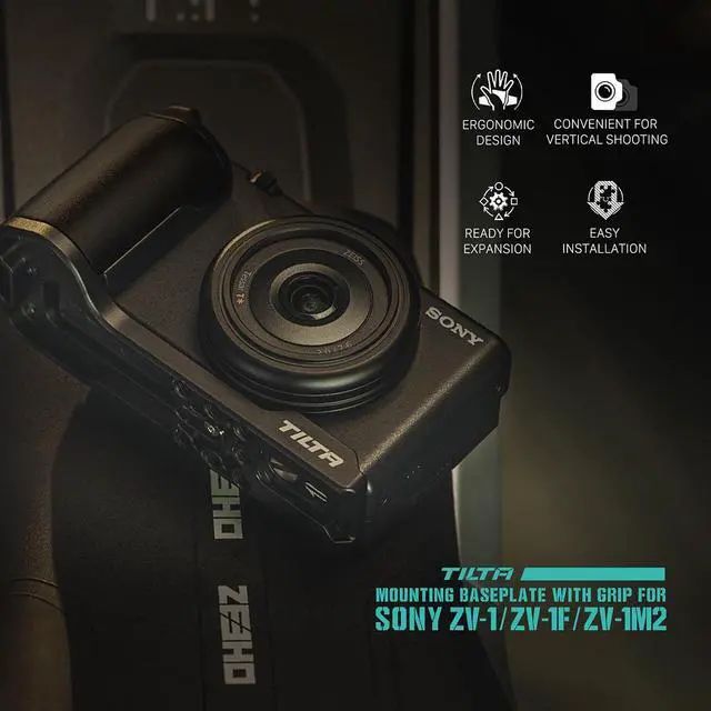Sony models: ZV-1, ZV-1F, and ZV-1M2, making it a versatile addition to your photography gear. The multiple 1/4"-20 threads with locating points on the right side facilitate convenient vertical shooting configurations, especially when used with a tabletop tripod or similar support system. In essence, this Mounting Baseplate with Grip for Sony ZV-1, ZV-1F, and ZV-1M2 is a comprehensive solution for photographers and videographers seeking to maximize their camera's potential and enhance their shooting experience.