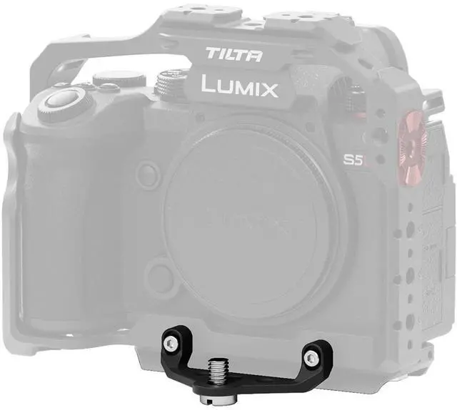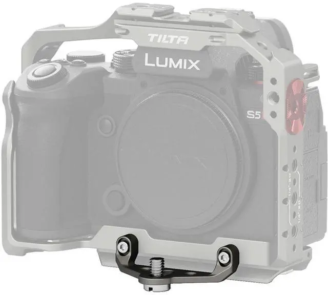 The Lens Adapter Support for Panasonic Lumix S5 II/IIX Cage is a precision-engineered accessory designed to enhance the stability and performance of your camera setup. By seamlessly connecting to the front of the Camera Cage specifically tailored for the Panasonic S5 II/IIX, this robust bracket offers a sturdy platform for various Lens Mount Adapters, securing them firmly in place with a reliable 1/4"-20 screw. Crafted to provide an extra point of contact, this support significantly reduces the risk of lens shifting, particularly when using a follow focus system during intensive shooting sessions. By mitigating movement, it ensures that your captured images remain sharp and consistent, while also alleviating undue stress on the camera's lens mount, thus protecting the integrity of your equipment over time.