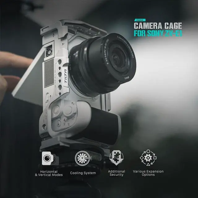 Its L-Bracket shape allows uninterrupted access to camera ports, user buttons, and the battery compartment, eliminating the need to remove the cage. The Half Camera Cage Lightweight Kit for Sony ZV-E1 also offers high compatibility with the original Sony wireless shooting grip for efficient handheld shooting configuration, ideal for vlogging. It's also compatible with the Tilta Mini Table Top Tripod, accommodating various shooting scenarios. The cage's design also includes an external cooling system to increase recording time, and it comes in two color options - black and silver - to suit your preference.