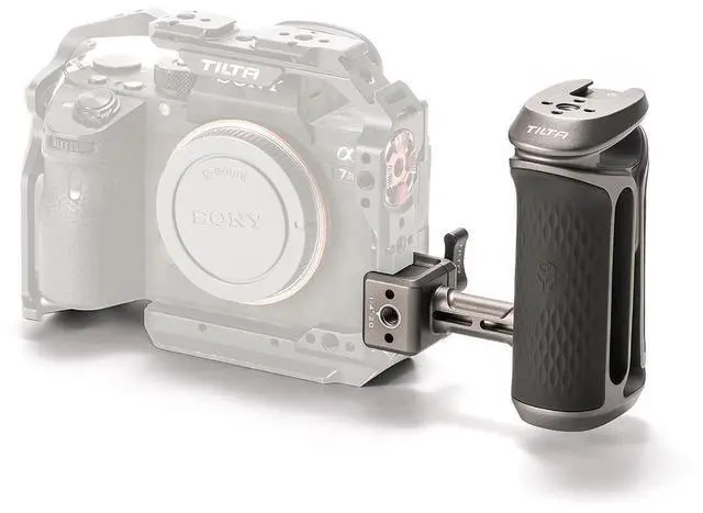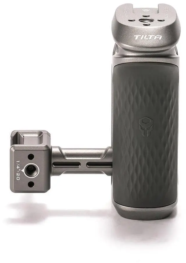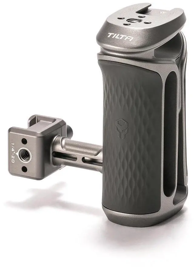 It can be mounted as either a left or right side handle, catering to different shooting styles and preferences. With an adjustable height of 40mm, users can customize the handle's position for optimal comfort during handheld shooting sessions, regardless of duration. The handle is crafted with non-slip silicone, offering a textured grip that enhances stability and ensures a confident hold. It also boasts multiple mounting points, including a Cold Shoe Receiver and a 1/4"-20 thread with locating points, allowing for the attachment of additional accessories. The built-in Allen Key is a thoughtful addition, making assembly and adjustments a breeze.