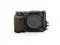 This camera cage features two additional points of contact between the cage. A security attachment on the top left side mounts to the camera's strap slot, while a locating pin on the bottom next to the 1/4"-20 mounting screw helps limit rotation from the camera within the cage.