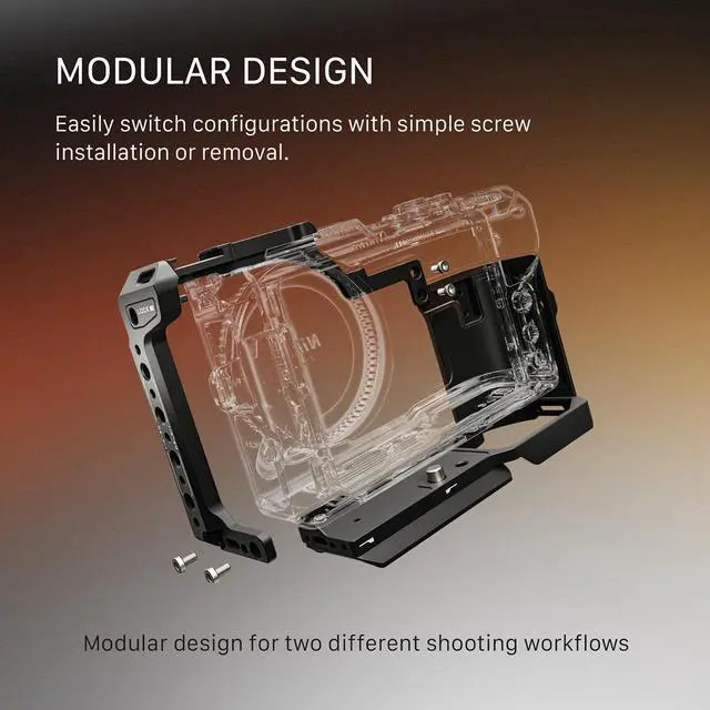 The modular design allows the full cage to be disassembled into an L-Bracket Style Half Cage when needed. This provides fewer mounting points, but reduces the total weight of the system, ideal for filmmakers using gimbals or moving quickly while shooting.