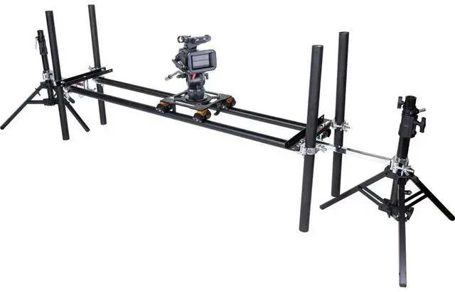 The unique U-shaped structure of these brackets not only provides superior stability but also allows for free-standing on the floor. This design element opens up opportunities for low-angle shooting, expanding the range of creative possibilities. The two adjustable rail holders included in this set offer a useable distance between the rails (center to center) from 7.75" ( 19.7 cm) to 15.8" ( 40.2 cm). This adjustability ensures that the Universal Track End can accommodate a variety of slider and dolly sizes, making it a truly universal solution. For added stability and security, additional M10 holes are drilled into each end of the bracket.