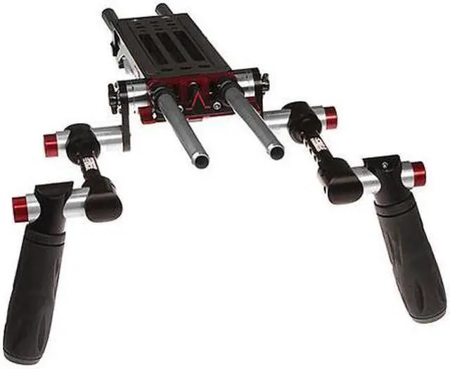 The BP7000's design is further enhanced with three slots on top of the plate, allowing you to work in either a centered or offset position, perfect for 15mm studio setups. This feature makes it an ideal choice for cameras equipped with an electronic viewfinder or an external monitor. The baseplate also boasts 1/4"-20 and 3/8"-16 threaded holes at the back, providing ample space to attach a variety of accessories. The front bracket has been innovatively designed to allow for quick height adjustments with a simple Allen key. Included in this kit are the Double Quick Handle Rosettes, which feature two handles that can rotate individually on a 360-degree axis.