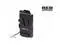 attery Slide Pro V-Mount (RED KOMODO) attaches to the camera-left, BP-9 battery slot and powers the camera using a right angle LEMO compatible connector. Thumbscrew can be loosened to tilt and slide the plate as needed. Three D-Taps on the plate provide battery voltage for accessories and power is monitored for over-current. If more than 5.8A are used by accessories, a digital fuse will trip and the red LED will illuminate but the camera will remain powered. Reset button can be pressed to restart accessory power once. DC Input on camera-right side can be used for hot-swapping between block battery and on-board battery.