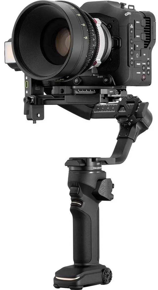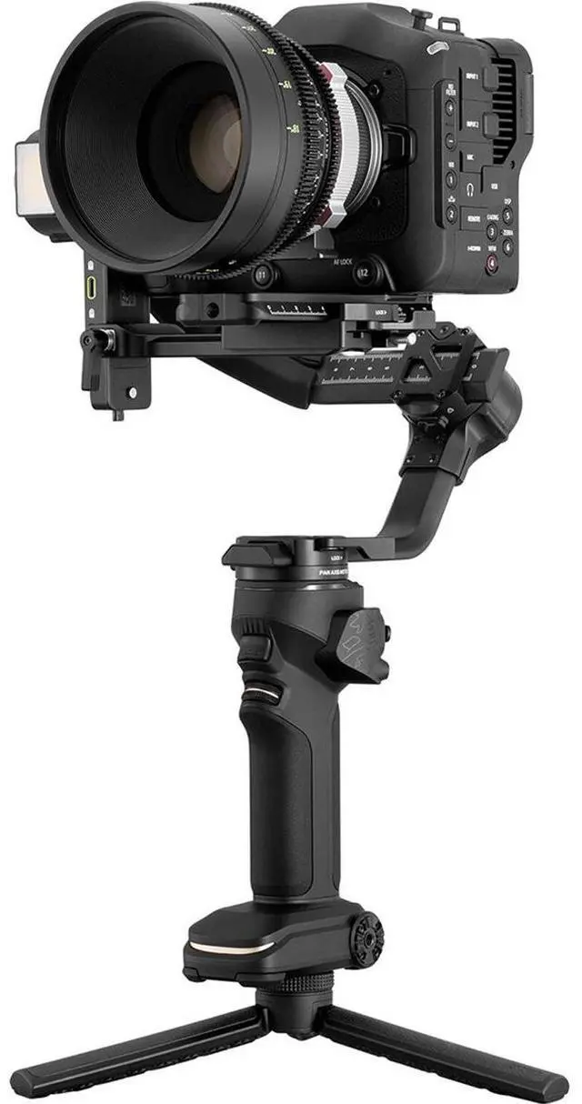The revolutionary Sling Mode offers more precise control, with an adjustable sling grip and a wrist rest that supports fine-tuning angle adjustment. This significantly reduces shooting fatigue while providing more precise movement control. The extendable sling grip can be adjusted to the gimbal's central axis, facilitating easy switching between sling mode and two-handed mode. The CRANE 4 is compatible with a wide range of cameras, from full-frame DSLRs to compact cinema cameras, thanks to its longer arm length, stronger motors, and extended quick-release plate. It also features balance indicator lights on each motor for precise balance calibration.