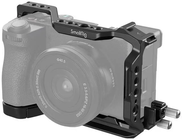 Experience the pinnacle of camera protection and accessory integration with the SmallRig Cage Kit for Sony A6700 4336. This robust and durable full camera cage kit is expertly designed to safeguard your Sony Alpha 6700 series camera while enhancing its functionality for professional use. Crafted from high-quality materials, the cage kit offers a sturdy and compact design that maintains the camera's sleek profile. It secures the camera firmly with a dual-locking system, featuring a 1/4"-20 screw on the bottom and an M 2.5 screw on the right side, complemented by built-in cushions that prevent any scratches to your valuable equipment.