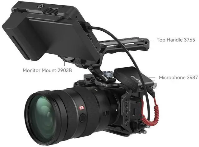 The innovative hinge arm at the battery door is meticulously shaped to fit the camera's curve, providing extra comfort and leaving room for your pinkie. This thoughtful design ensures that you can shoot for extended periods without compromising on ease of use or access to the camera's battery. For those who prioritize connectivity, the HDMI cable clamp is a game-changer. It attaches swiftly to the left side of the cage using a thumb screw, safeguarding the HDMI port from damage and guaranteeing stable signal transmission for flawless video output. The versatility of this cage kit is unmatched, with multiple mounting points to accommodate a wide array of accessories.