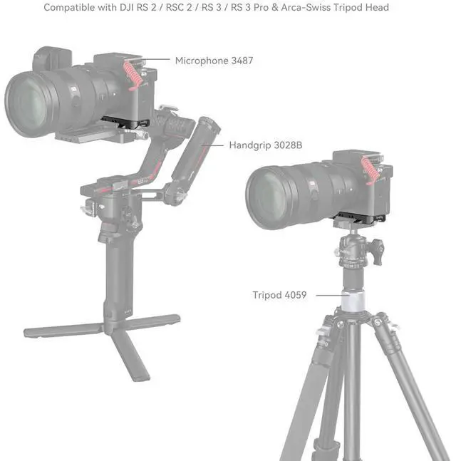 The hinge arm at the battery door is designed to perfectly fit the camera's curve, providing additional room for your pinkie. This ergonomic design enhances comfort during extended shooting sessions. The front of the mount plate is compatible with the Horizontal-to-Vertical Mount Plate 4424, enabling quick and easy switching between horizontal and vertical shooting modes. The SmallRig Bottom Mount Plate features an Arca-Swiss quick release plate on the bottom, making it compatible with DJI RS 2 / RSC 2 / RS 3 / RS 3 Pro gimbals. It also supports the DJI RS 2 / RSC 2 gimbal's quick-release plate and the Arca-Type Quick Release Plate 3154, offering a wide range of mounting options.