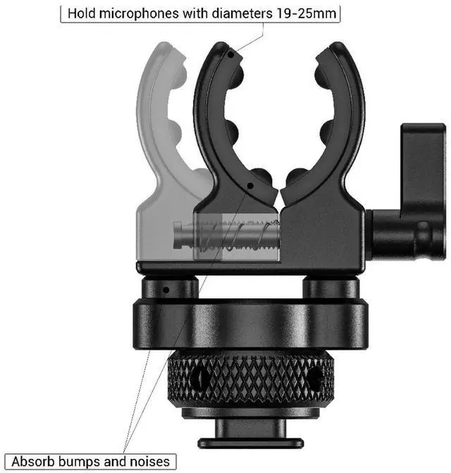 The base of the holder features a cold shoe mount, allowing for direct attachment to cold shoe adapters such as the SmallRig Cold Shoe Mount 1960 and 2260. It can also be seamlessly integrated with cages that have a cold shoe mount on top, enhancing its versatility and adaptability to various shooting scenarios. One of the standout features of this microphone holder is its soft silicone padding. Located in the microphone clamp and between the two parts, this silicone padding is designed to absorb bumps and noises during run-and-gun shoots. This feature ensures that your audio capture remains clear and free from unwanted noise, even in the most challenging filming conditions.
