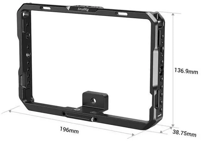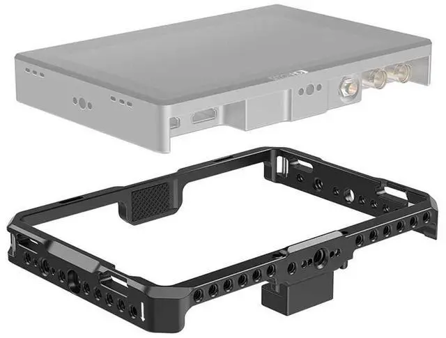 For professionals seeking robust protection and enhanced functionality for their SmallHD 702 Touch Monitor, the SmallRig Cage with Sun Hood CMS2684 is an ideal solution. This high-quality, durable cage is meticulously designed to offer comprehensive protection and versatile accessory mounts for your monitor. The cage firmly secures to the monitor using three 1/4"-20 screws, strategically placed at the top, bottom, and back for optimal stability. It boasts an array of 1/4''-20 and ARRI 3/8''-16 threads, enabling the attachment of a variety of accessories such as the Magic Arm 2115, Monitor Mount BSE2348, and Wireless Receiver Bracket 2107.