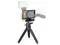 The cage also features a cold shoe on the top and right side, perfect for mounting a microphone or light, simplifying your vlogging setup. The cage's ergonomic design includes a wooden handgrip and increased space between the grip and lens for comfortable holding. The bottom of the cage boasts six 1/4"-20 tripod threads, allowing for easy attachment of a tripod, a QR plate, or a handle without blocking the battery door. The SmallRig Tabletop Mini Tripod included in this kit is an ideal companion for compact DSLRs, mirrorless cameras, smartphones, and action cameras.