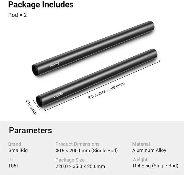 Whether you're building a custom rig or simply need a dependable pair of support rods, the 15mm Black Aluminum Alloy Rod Pair with M12 Thread is an excellent choice for creating stable and reliable video setups.