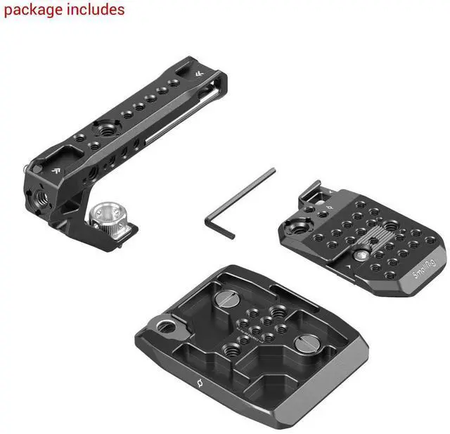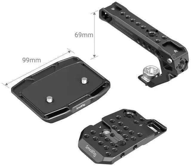 This top plate is not only portable but also maintains the camera's sleek profile, supporting the original handle without the need for frequent assembly and disassembly. Two integrated cold shoe mounts on the top plate offer quick attachment points for essential accessories such as microphones and LED lights. The plate also boasts an array of 1/4"-20 and 3/8"-16 threaded holes, catering to a variety of accessories like monitors, magic arms, and rod clamps. For even more versatility, the ARRI 3/8"-16 locating holes are ready to accommodate the SmallRig ARRI Locating Handle 2165, providing a more stable handheld shooting experience.